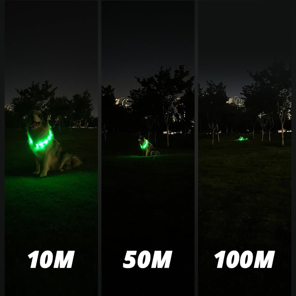 Com bateria recarregável e ajustes práticos, a Coleira LED também pode ser usada em dias de chuva!